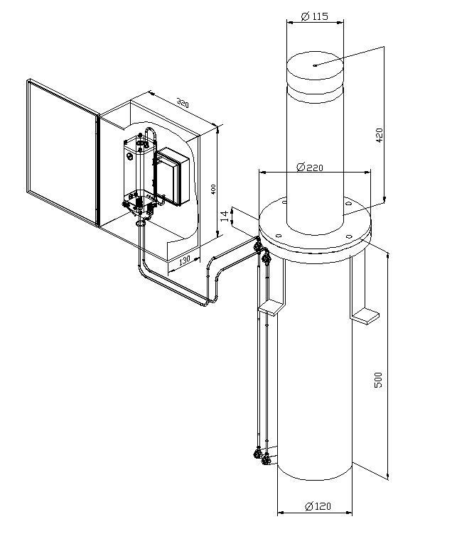 External cabinet and concealable bollard. Motor pump and control panel in external cabinet (easy maintenance).